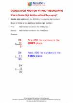 Math Handouts: Double Digit Addition Without Regrouping - ThoughtCo D.Russell These printable two-digit addition without regrouping handouts will help your students to understand the basics of double-digit addition. The answer key for each can be found on page two of the following linked PDF documents: Print Worksheet #1 Print Worksheet #2 Print Worksheet #3 Print Worksheet #4 Print Worksheet #5 Print Worksheet #6